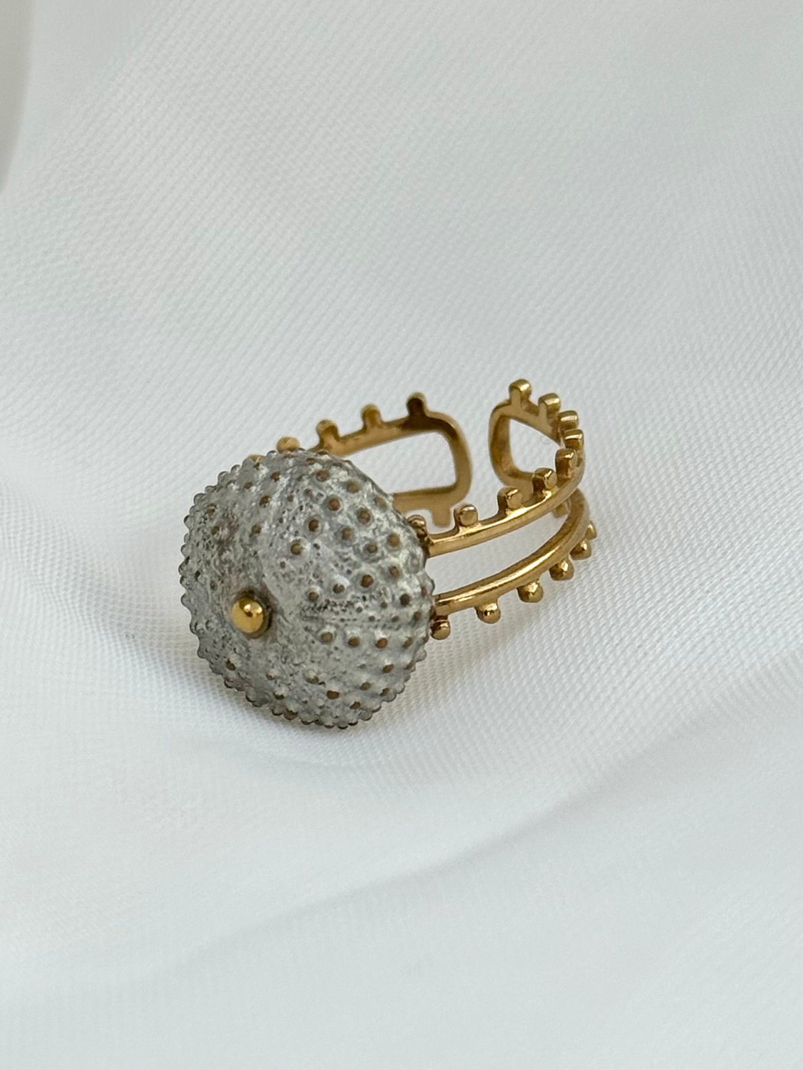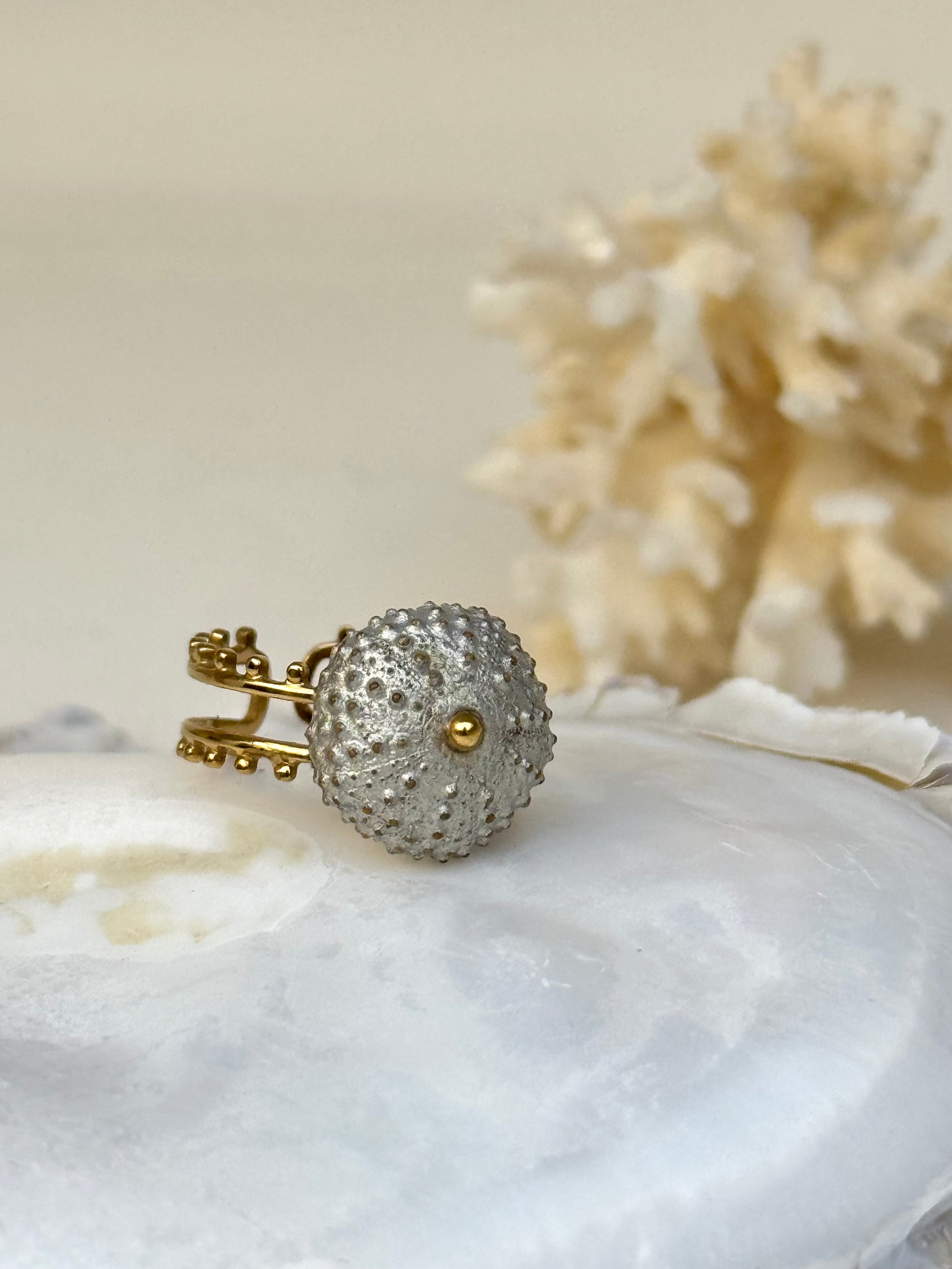 La bague Oursine allie l'élégance de la couleur doré, à la puissance argentée pour donner une touche d'élégance optimale, tout en portant les vertus de l'oursin.*