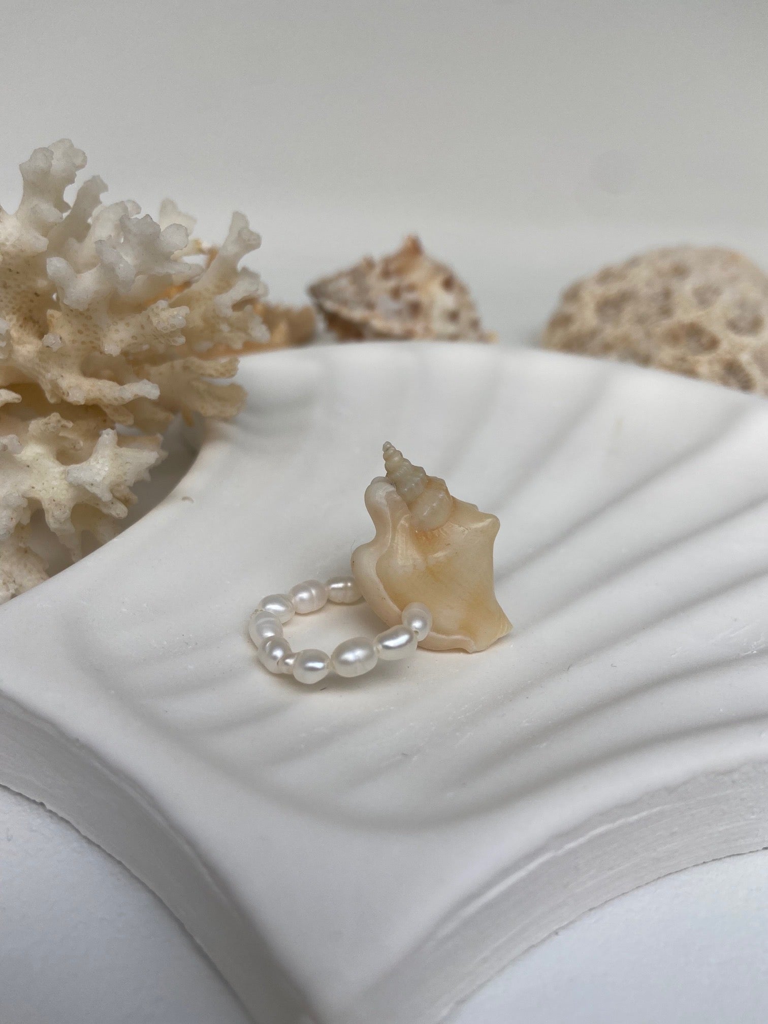 En perle d'eau douce et coquillage, cette bague a été conçue pour être solaire, divine et transmettre toute la puissance que la nature peut nous offrir.